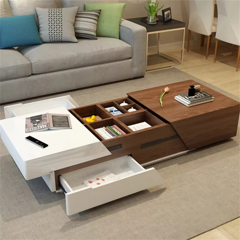 Nuovo moderno minimalista personalizzato bianco noce estensibile in legno TV tavolo e tavolino con ampio spazio di archiviazione