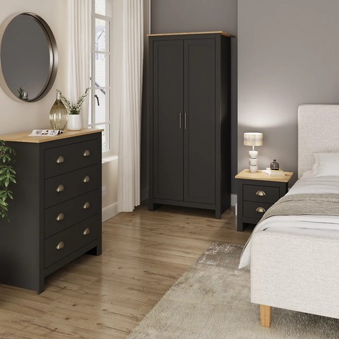 Fornitore della cina nero Country Cottage stile 4 pezzo set da camera da letto mobili con ampio spazio di stoccaggio effetto rovere a contrasto Top