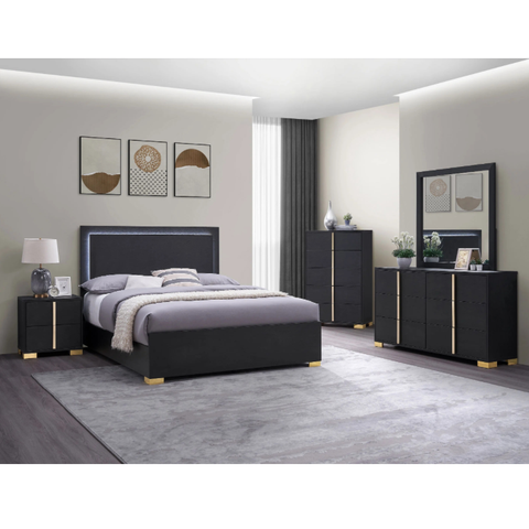 Moderno Set da camera da letto nero King-Size 5 pezzi con ampio ripostiglio incorporato illuminazione a LED per camera da letto Hotel appartamento
